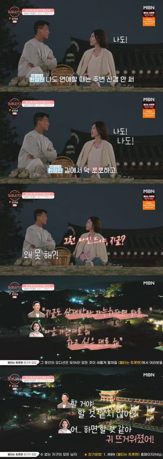 조예영의 물음에 한정민은 “지금도 상대방만 가능하다면 바로”라고 대답했고, 그러자 조에영은 “마음 가는 대로 해. 하고 싶은 대로 해”라고 말해 분위기를 달아오르게 만들었다.
