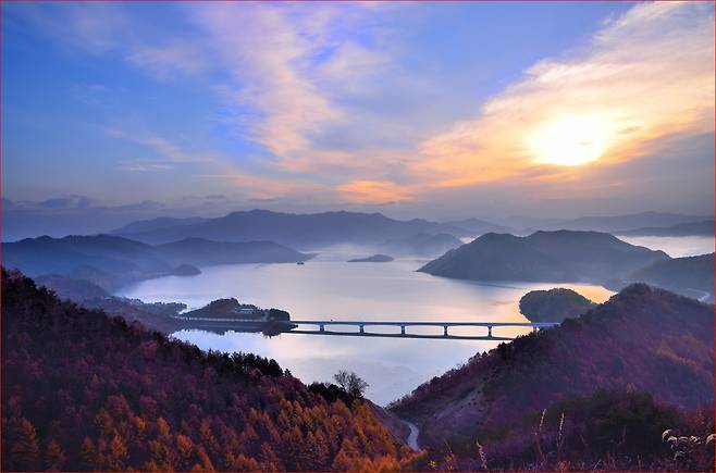맑은 날에는 수면 위로 산 그림자가 또렷하게 비치고, 흐린 날에는 옅은 안개가 내려앉아 전혀 다른 분위기를 연출합니다. 계절마다 빛과 색이 달라지기 때문에 같은 길을 여러 번 달려도 늘 새로운 풍경을 만날 수 있습니다. 그래서, 용담호는 목적지보다 ‘가는 과정 자체가 여행이 되는 곳’이라 불립니다.