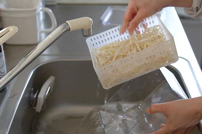 이 방법은 콩나물이 지속적으로 수분을 공급받기 때문에 시들지 않고 아삭함을 유지하는 데 도움이 된다. 다만 가장 중요한 것은 물 교체다.