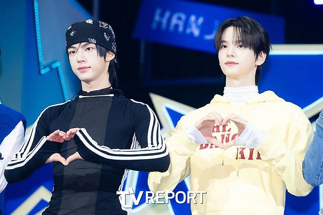 [TV리포트=오민아 기자] 그룹 '투어스(TWS)' 도훈과 신유가 13일 오후 서울 광진구 광장동 예스24라이브홀에서 열린 미니 4집 '플레이 하드(play hard)' 발매 기념 쇼케이스에 참석해 포즈를 취하고 있다.