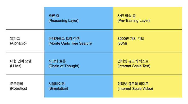 이를 알파고, LLM, 로보틱스로 비교 설명하면 아래와 같다.