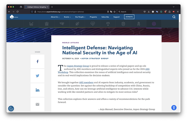 출처: Intelligent Defense: Navigating National Security in the Age of AI – The Aspen Institute (아스펜 전략 그룹, 10월 16일)