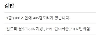 김밥 한줄도 꽤 칼로리가 높군요
