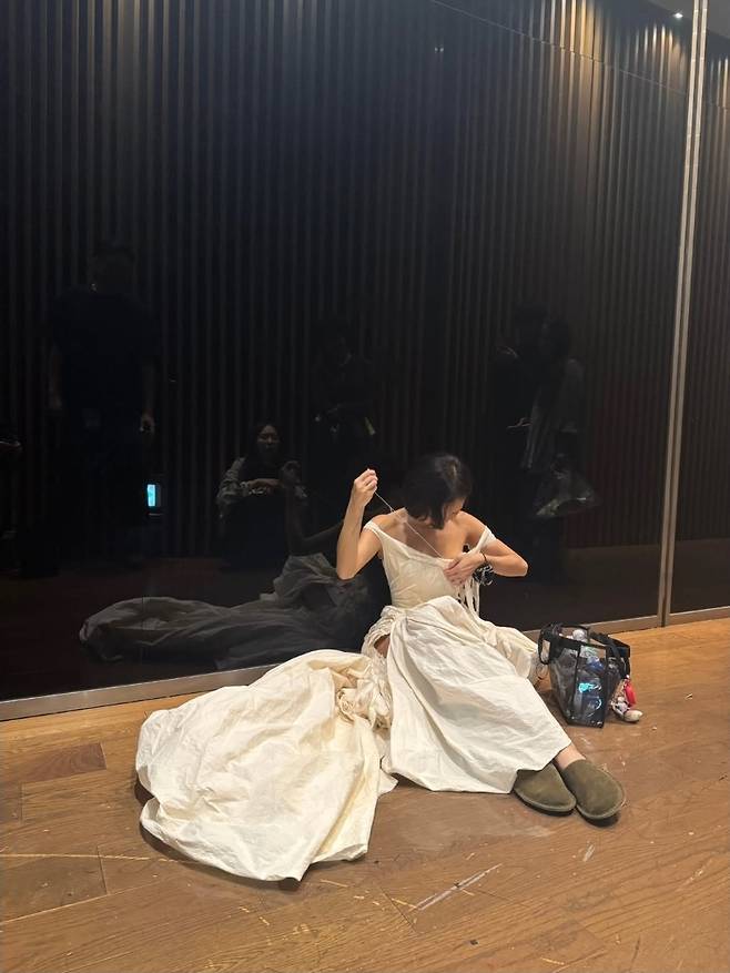 또한 촘촘히 말린 뿌리 볼륨과 흐트러진 듯한 사이드뱅으로 마무리해, 기존의 강렬하고 글래머러스한 이미지 대신 시크하고 도시적인 무드를 보여줬습니다.