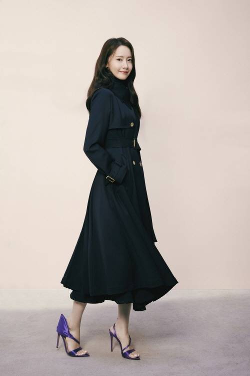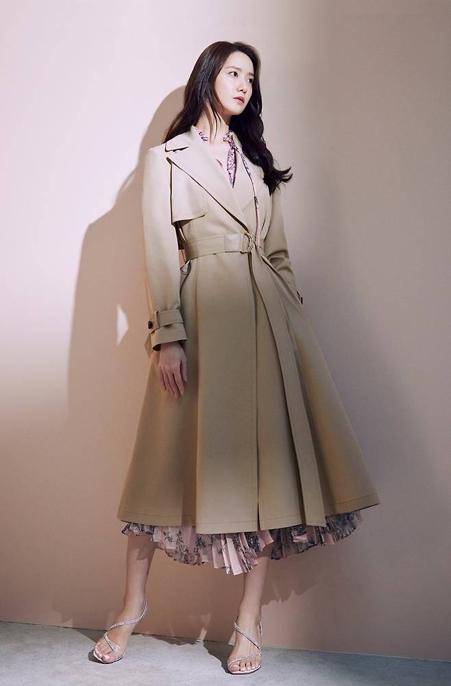 또 다른 사진 속 윤아는 어깨견장, 요크 백 플랩(Yoke Back Flap) 디자인, 패턴과 실루엣 등 전통적인 공식에 충실한 플레어 스타일의 클래식한 트렌치 코트룩을 선보였다. .