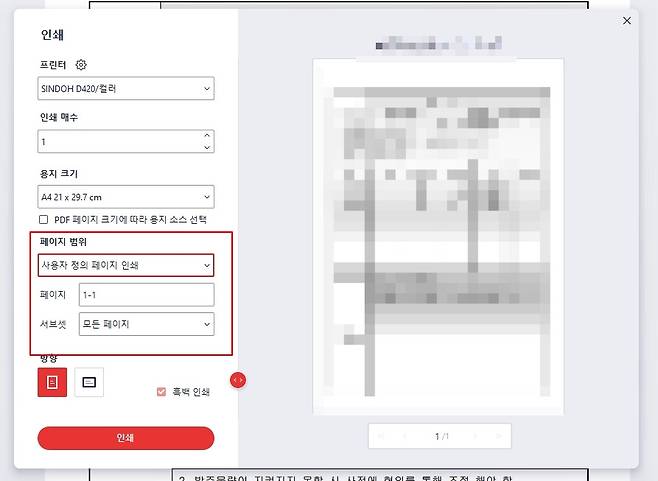 인쇄 페이지 지정 방법