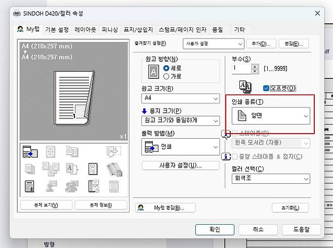 인쇄 종류 - 양면으로 변경