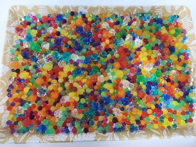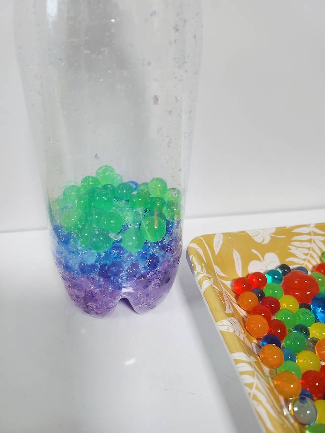이번에도 놀이하고 불려둔 수정토가 많이 있어서 이걸 응용해 놀이해 보았어요.