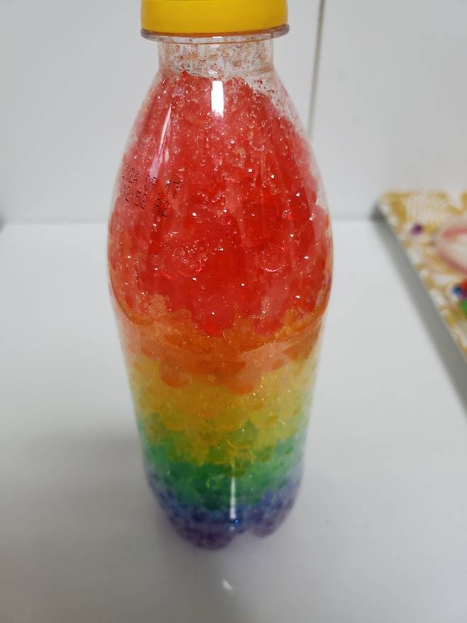 열심히 색깔찾기를 하며 넣다보면 통이 가득 차기 시작해요! 그런데 만들다보니 너무 큰 통에 하면 힘들것 같단 생각이 들더라구요, 최대한 작은 통으로 해주세요!