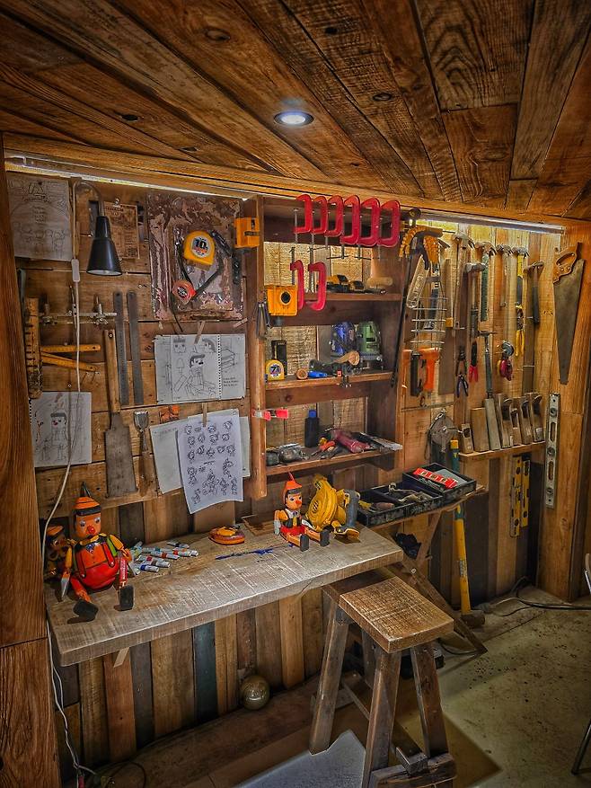 – 포스터, 타자기, 골동품, 고풍스러운 액자와 조명이 포토존으로 연출돼 있어요.