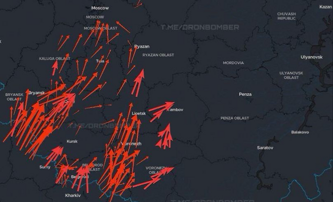 뿐만 아니라 러시아의 쿠르스크, 벨고로드, 브랸스크, 툴라, 오룔, 칼루가, 리페츠크, 스몰랜스크, 툴라 지역 등 많은 곳에서 동시다발적인 우크라이나군의 드론 공습이 발생했습니다.