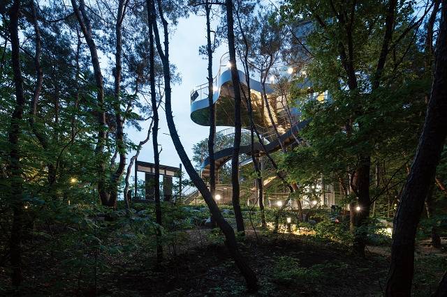 불암산 정상으로 향하는 산자락에 위치한 불암산 힐링타운 둘레길을 걷다 보면 나오는 이 전망대는 여러 면에서 고정관념을 깨는 건축물입니다. 우선 네모반듯한 형태를 벗어난 디자인부터 파격적입니다. 비교적 완만한 경사로 된 데크 산책로를 따라 10분 정도 걸어가다 보면 아메바처럼 생긴 높이 10m 남짓한 비정형 구조물이 등장합니다. 공중에 떠 있는 듯한 전망 데크의 하부도 시선을 사로잡습니다. 거울처럼 반사되는 스테인리스 재질로 돼 있어 산책로를 걸을 때는 보이지 않는 주변 풍경이 비칩니다. 공간감이 확장되며 마치 SF영화의 한 장면을 보는 듯 미래적인 느낌이 물씬 풍깁니다. 덕분에 작은 규모의 건물(대지면적 277.117㎡, 연면적 143.57㎡)이지만 멀리서도 존재감을 또렷이 발산합니다. 이 전망대는 독특한 조형미와 기능성을 갖춘 훌륭한 건축작품으로 인정받아 ‘2021년 대한민국 공간문화대상’에서 장관상을 받기도 했습니다.