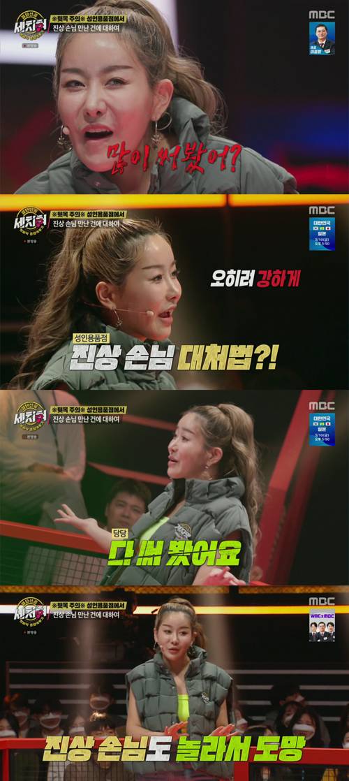 퀸 와사비는 7일 오후 방송된 MBC '혓바닥 종합격투기 세치혀'(이하 '세치혀')에 출연해 "음악 장비를 사기 위해 아는 지인의 소개로 성인용품점에서 아르바이트를 하게 됐는데 어나더 레벨의 진상 손님들을 만났다"고 운을 뗐다.