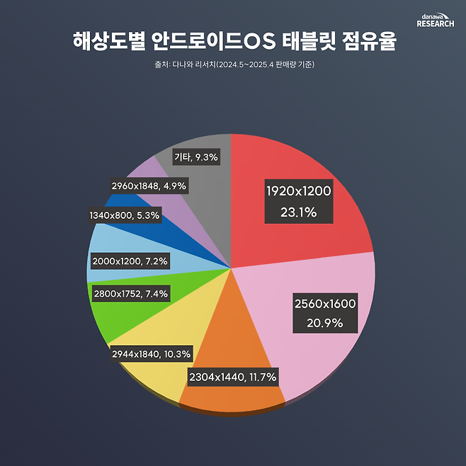 반면 7~8인치(20.8%)와 9~10인치(20.9%) 제품은 비슷한 수준으로 하위권을 형성 중이다. 7~8인치는 휴대성이 강조된 어린이용·전자책용에 주로 활용되고, 9~10인치는 무난한 사이즈지만 중대형 화면 수요에 밀려 점차 비중이 줄고 있다. 13인치 이상 대형 모델은 여전히 6.1%에 그치며 생산성을 중시하는 전문가 수요에 한정되는 모습이다.
