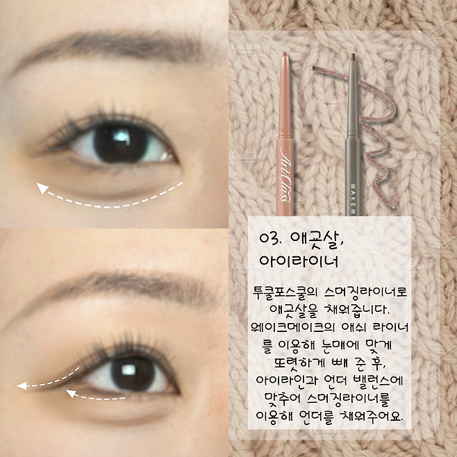 눈매보다 조금 더 밑으로, 뒤로 터주는 느낌으로 그어주기!