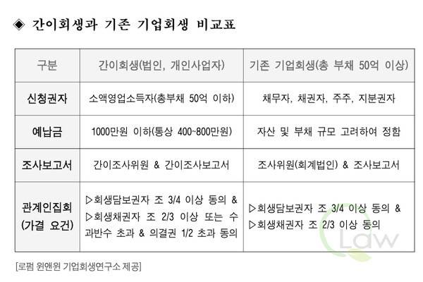 기존의 기업회생과 간이회생절차의 차이점과 주의할 점