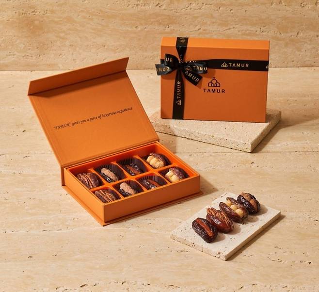 타무르의 대추야자는 씨를 제거하고 마카다미아, 오렌지 절임, 카라멜을 입힌 피칸, 허니버터 아몬드를 넣어 특별한 수제 디저트를 완성했다. 열매 본연의 달콤한 맛이 강하게 나는 것이 특징. 와인이나 위스키 안주로 잘 어울린다는 평이 많다. 가격은 8개입 1만 9,800원.