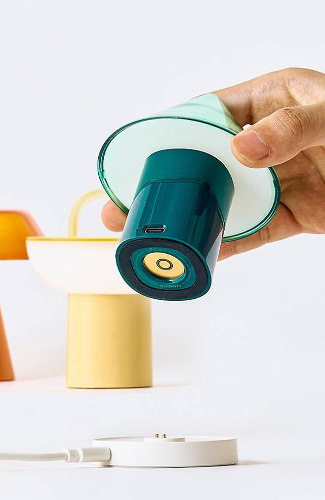 루메나 무드등은 USB-C타입 케이블로 본체를 직접 충전하거나 전용 크래들에 케이블을 연결해 충전할 수 있다. 무선으로는 최대 40시간까지 이용 가능하다. 가격은 개당 4만 9,000원.