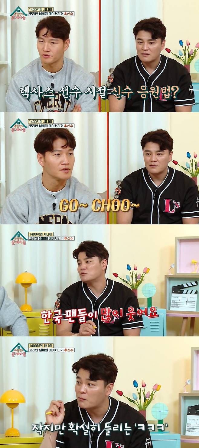 이어 김종국은 "텍사스 시절에 추신수 선수 응원법이 있다"며 'Go Choo'를 언급했다.