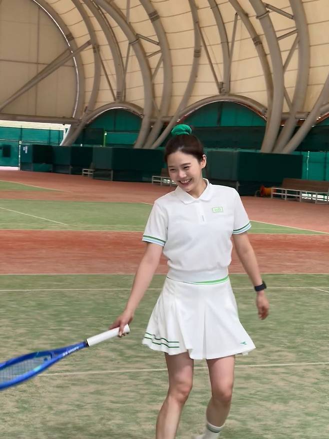헤어는 올림머리로 단정하게 묶고, 같은 톤의 헤어밴드를 매치해 전체적인 룩에 통일감을 줬다. 여기에 운동화와 양말 역시 화이트와 그린 조합으로 선택해 룩의 완성도를 높였다. 팬들은 “진짜 살아 있는 테니스 인형 같다”, “효정이랑 테니스 치고 싶다”는 반응을 보이며 열띤 호응을 보내고 있다.