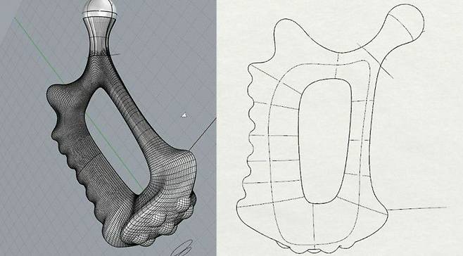 전문가에게서 받는 경락 마사지 과정에 착안해 모양을 그렸다. “‘전문가의 손맛’을 구현했어요. 전문가가 검지, 주먹, 손날, 팔꿈치 등 신체 구조를 다양하게 활용하듯, 괄사도 다양한 마사지 효과를 낼 수 있도록 설계해보기로 했죠.”