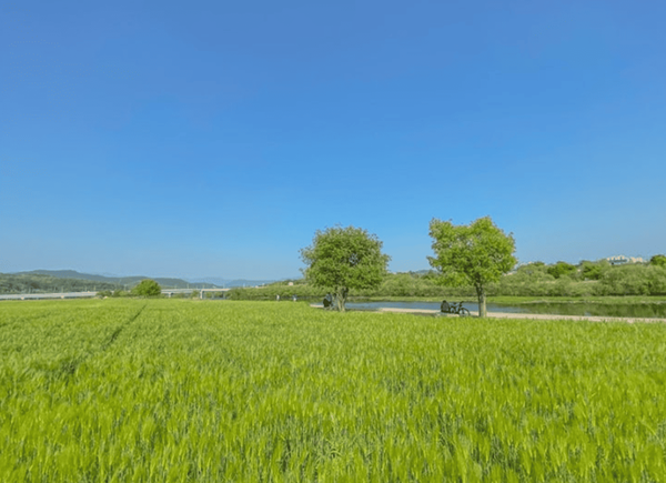 하중도는 금호강 중간에 솟아난 작은 섬 형태의 공간으로, 철새 관찰지로도 유명합니다. 여름엔 갈대숲과 함께 어우러진 초록의 자연이 눈을 편안하게 해주는데요. 넓은 공간에 비해 방문객이 많지 않아 조용히 풍경을 감상할 수 있습니다.