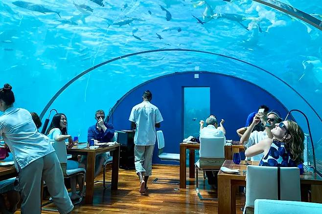 그중에서도 '이타아'는 세계 최초의 해저 레스토랑으로 유명합니다. 이타아는 실제로 수중 5m 지점에 있어 돔 형태의 유리를 통해 바닷속을 만끽할 수 있는데요.
