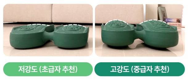 공기 주입량에 따라 난이도가 달라집니다. 운동을 해보면서 자신에게 맞는 정도의 바람을 주입하는 걸 추천합니다. 다만, 사용 시 발이 바닥에 닿지 않을 정도로는 공기를 넣어야 합니다.