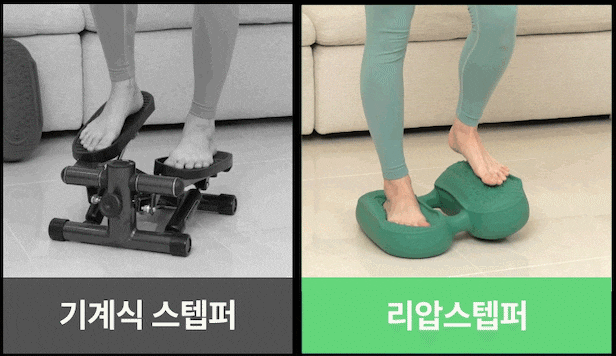 시중의 스텝퍼는 제자리 걷기에만 국한된 디자인인데요. 리압스텝퍼는 유산소 운동인 제자리 걷기, 밸런스 운동인 스쿼트, 복부 운동인 브릿지 레그 킥, 전신 근력 운동인 마운틴 등 다양한 운동에 응용 가능한 형태입니다. 활용성이 좋죠.