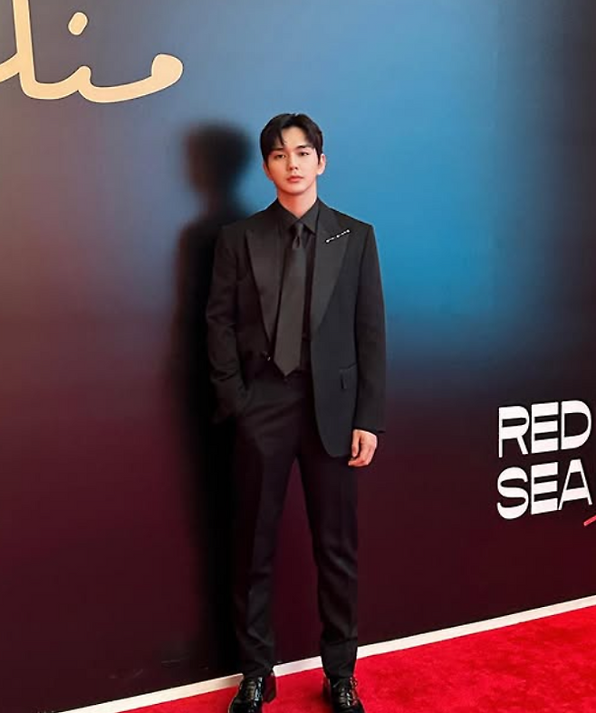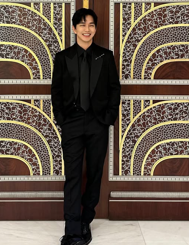 유승호 님은 올블랙 정장 패션을 선보였는데요. 자켓부터 셔츠, 넥타이, 슬랙스, 구두까지 모두 블랙 컬러였죠. 재킷의 카라 부분과 넥타이는 실크 소재인지 번떡하고 빛나 색다른 질감으로 멋스러운 포인트를 주었어요.