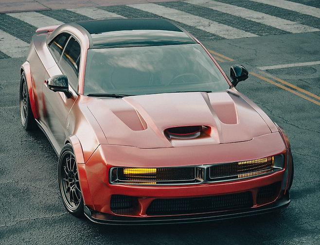 나아가 2026년형 닷지 차저 SRT8 디자인도 공개됐는데, 다크 오렌지 색상을 적용해 더욱 강렬한 인상을 주었다.