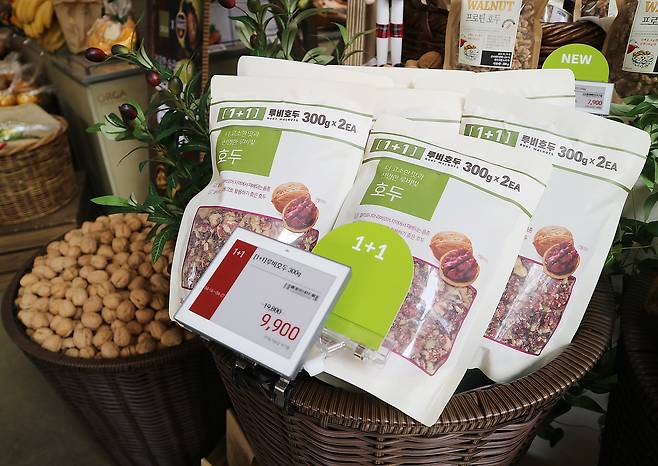 전통 견과류의 대표주자 호두가 달라졌다. 최근 방문한 서울 송파구 올가홀푸드 방이점에서는 주로 원물 간식으로 먹던 호두가 트렌드에 맞춰 옷을 갈아입고 소비자 눈길을 끌고 있었다.