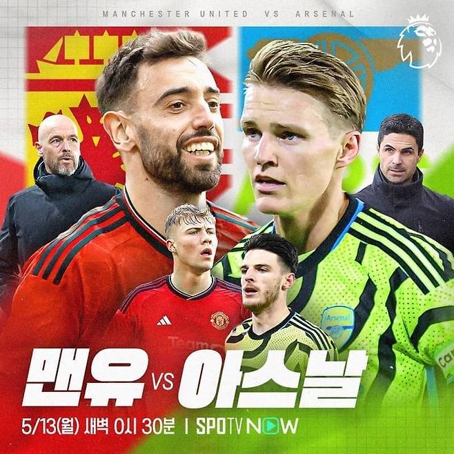치열한 승부가 예상되는 PL 37라운드 맨유 대 아스날 경기는 13일 월요일 새벽 0시 30분 TV 채널 스포티비 프라임(SPOTV Prime)과 스포츠 OTT 채널 스포티비 나우(SPOTV NOW)에서 독점 생중계된다.