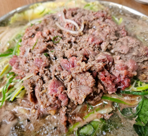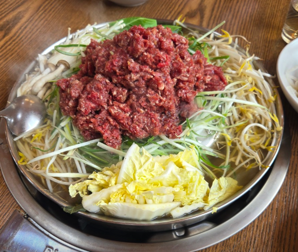 불판 중앙이 솟은 구조라 고기는 촉촉하게 익고, 채소는 육수에 자연스럽게 우러나 마지막까지 맛이 깔끔했습니다. 흔한 불고기와는 확실히 결이 다릅니다.