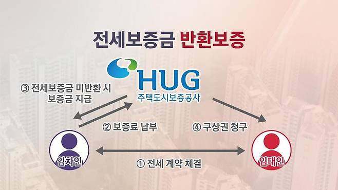 같은 기능을 하는 대표적인 상품으로 주택도시보증공사(HUG)의 전세보증금반환보증, 서울보증보험(SGI)의 전세금반환보증보험 등이 있죠.
