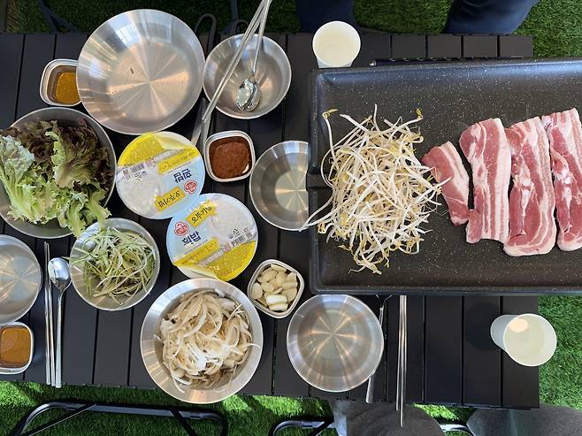 야외와 실내로 꾸며져 있는 어메이징빌리지는, 자연스러운 공기와 풍경을 느끼며 식사를 즐길 수 있다는 것도 장점이에요. 특히 고기를 직접 구워 먹는 메뉴가 인기인데, 미리 준비해 올 필요없이 원하는 고기를 바로 구매해 먹을 수 있어 편하더라고요. 캠핑용 그릴이나 숯불을 활용해 자신만의 속도로 구워 먹으니 더 맛있게 느껴집니다. 육류 외에도 각종 사이드 메뉴와 어린이용 식사 메뉴가 준비되어 있어, 아이부터 어른까지 모두가 만족스럽게 식사를 할 수 있어요.