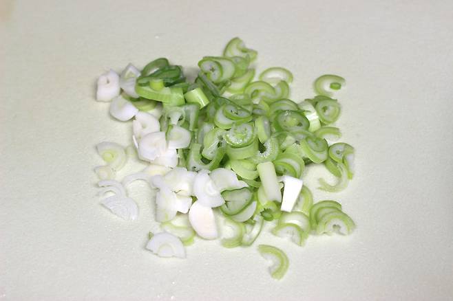 그사이 대파는 조금만 씻어 총총 썰어주고요.