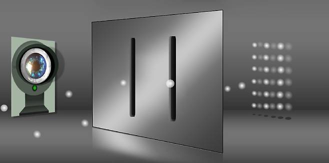 이중슬릿으로 입자를 보내면 두 줄이 생긴다.