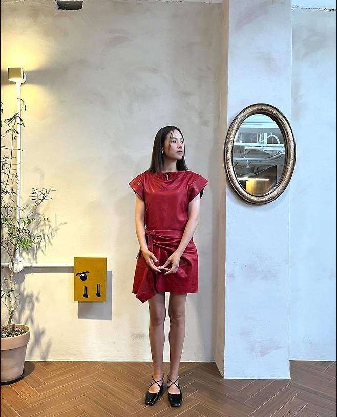 조윤희는 레드 가죽 원피스를 착용해 강렬하고 세련된 이미지를 돋보였습니다.