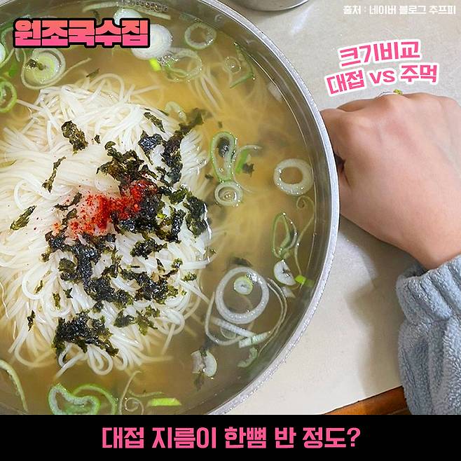 멸치육수로 진하게 우려낸 감칠맛 나는 국물에 쫄깃한 국수 면발, 1.5인분~2인분 양은 많은 분들이 꼽는 원조국수집의 장점이었어요.