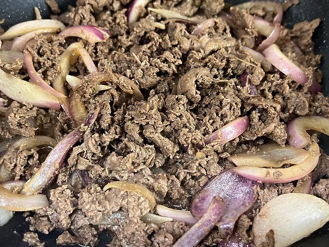 불고기는 보통 국물이 살짝 있게 조리하는데요. 오늘은 그보다 훨씬 쉽고 간단한 불고기 레시피 소개합니다. 수분이 없이 바싹 볶는 것이 특징입니다.