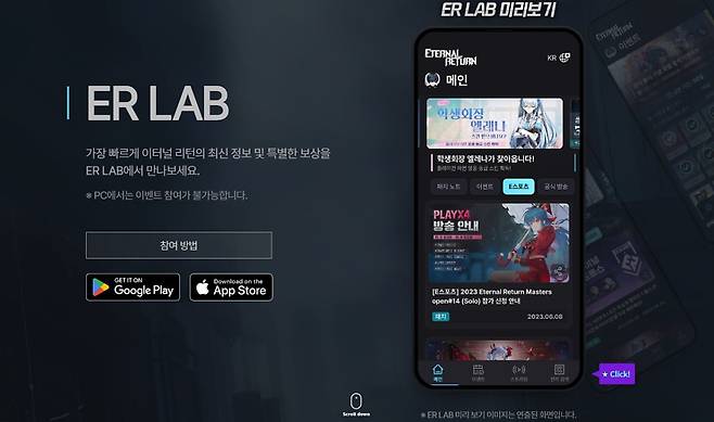 임성민: PC 기반 게임이라 모바일에서는 소통 기회가 적었는데, 이번에 ER LAB을 통해 적극적인 쌍방향 소통은 아니더라도 안내나 부족함에 대한 보상 방안을 모바일에서 주자는 생각에 일차적으로 오픈하게 됐다.
