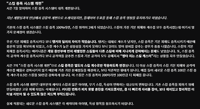 김승후: 스쿼드 체재로 바뀌며 팀내 역할 구분, 캐릭터 플레이를 충족시켜주기 위해 준비 중이다. 캐릭터의 개성을 느끼는 요소로 자리 잡지 않을까 싶다.