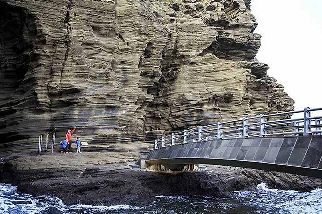 지질학적으로는 파식대라고 불리는 이 길은, 폭은 좁지만 평탄하게 조성되어 약 30분 코스로 산책하기에 딱 좋은 해안 트레일입니다. 바다와 암벽 사이를 걷는 이국적인 풍경은 외국의 해안 절벽을 연상케 하지만, 실은 제주 자연이 만든 유일무이한 선물이에요.