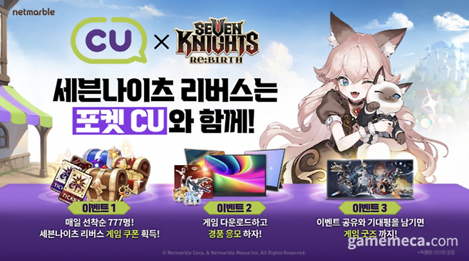 넷마블은 CU 멤버십 앱 ‘포켓CU’와의 제휴 이벤트를 통해 유저들에게 다양한 보상을 제공합니다. 이벤트는 6월 15일까지 진행되며, 매일 선착순 700명에게 ‘영웅 소환 이용권 1장, 골드 7만, 열쇠 상자 50개, 진화재료 상자(중) 10개’를 지급합니다. 또한 선착순 77명에게는 영웅 소환권 7장, 픽업 소환권 3장, 희귀 영웅 소환권 등의 추가 보상이 주어집니다.