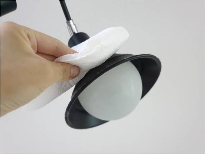 전등갓을 살펴보면 뽀얗게 먼지가 많이 내려앉아요