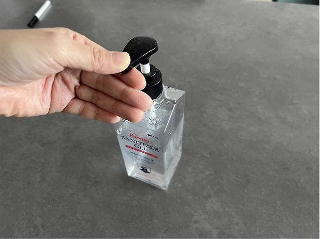 손소독제 몇 번 펌핑해서 슥슥~ 문질러 닦아주세요