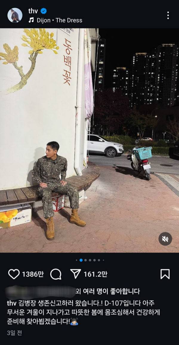 이때 뷔가 군복을 입고 사진을 찍은 장소가 어디인지가 팬들 사이에서 관심사가 됐다. 뷔가 사진을 찍은 장소는 경춘선 철로 교각 아래에 있는 춘천 풍물시장의 벤치로 확인됐다. 벤치 위쪽으로는 춘천 출신 문학가 김유정의 소설 ‘동백꽃’이 새겨져있다.