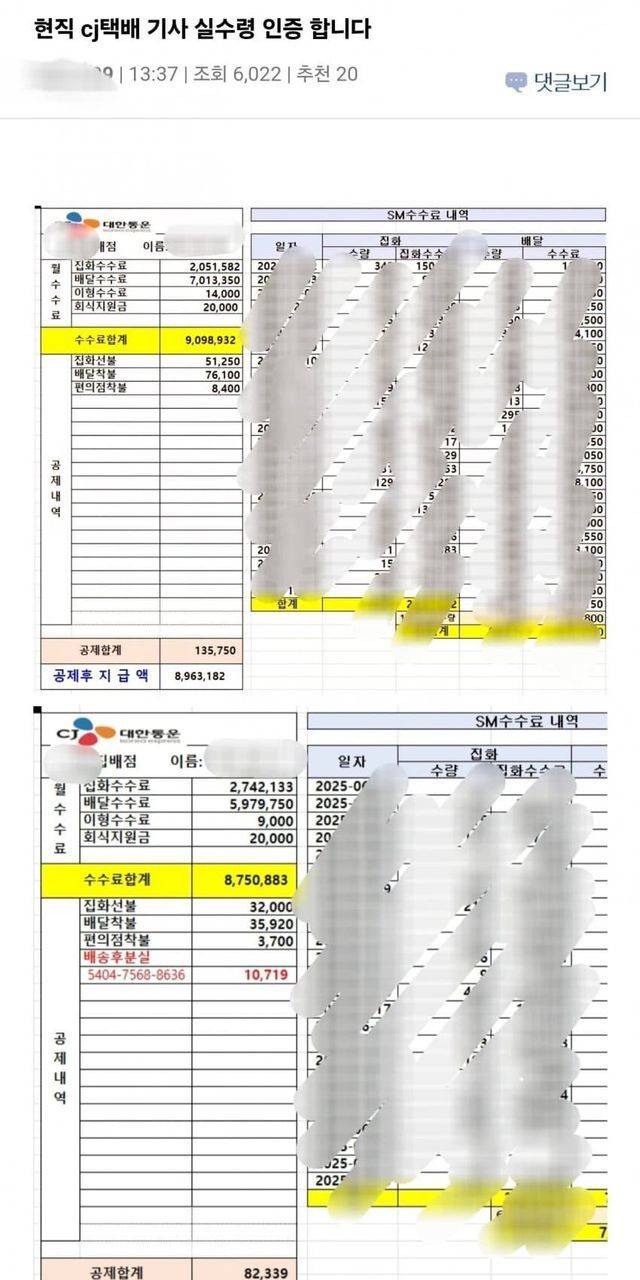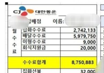 현직 CJ 택배기사 실수령 월수입 인증.jpg