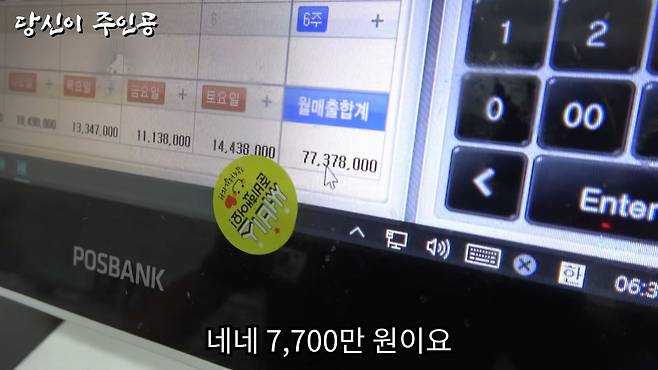 현재 매출은 6월 기준으로 7,700만 원이네요. 이 매출은 순수 홀에 와서 드시는 분 매출이고, 일매출 350만 원 정도 돼요.